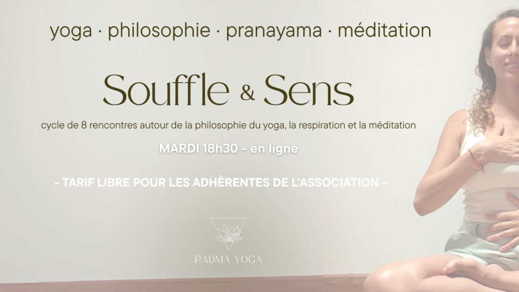 Chaque séance durera 1h15 et mêlera des temps d’échange autour d’un thème issu de la philosophie du yoga, des pratiques de respiration (pranayama), de la méditation guidée, et quelques mouvements doux pour éveiller le corps en conscience. Tout cela se pratique facilement depuis chez soi, sans avoir besoin de grand espace : un tapis, un coussin, ou même un petit tabouret suffisent. Il s’agit d’un moment pour soi, ancré dans le quotidien, mais orienté vers l’intérieur.